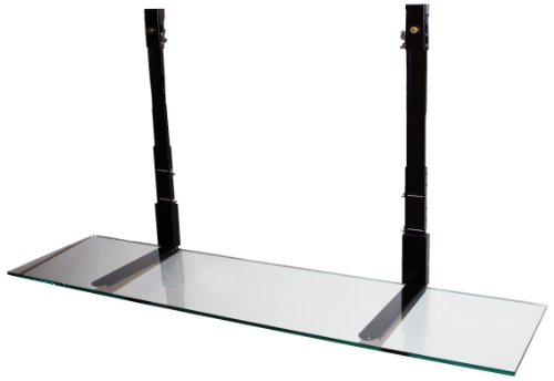 Simple Shelving Solutions Model CLG-00048 is a sleek and stylish way to add a 48” clear glass floating shelf to many of the most popular HDTV stationary and tilt wall mounts, without any tools. It’s patent pending design attaches directly to the stationary or tilt mount, not the wall. The black E coat aluminum extension arms with wall bumpers attach to the anti lift locking mechanism to safely secure the floating shelf to the wall mount. The 3/8” thick clear beveled glass is 12” deep and adjustable in height. Holding up to 30 lbs., Simple Shelf is perfect for the cable box, DVD or other devices. To hide the unsightly wires from your devices, a cable management system is included. The Simple Shelf currently works with 32”-60” stationary mounts and tilt from AVF Vector, Bello, Chief, Haropa, Ionic, K2, Level Mount, Luxor, Monster, Omni, Peerless, Premier, ProMount, Rhino, Sanus and Welton. Simple Shelf is not for use with Articulating, Full Motion, or motorized Wall Mounts,